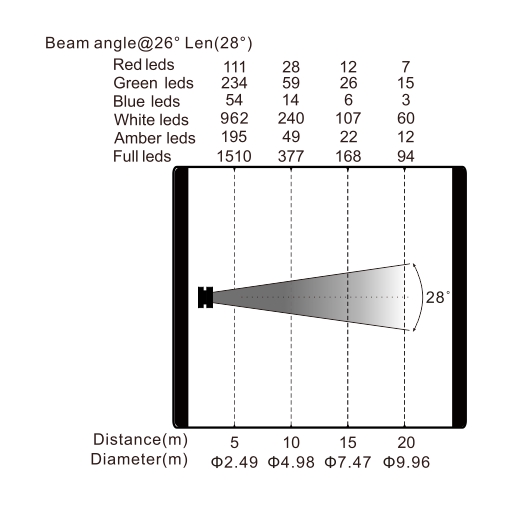 光學(xué)角度:28°@26°鏡頭(可選19°/36°/50°)